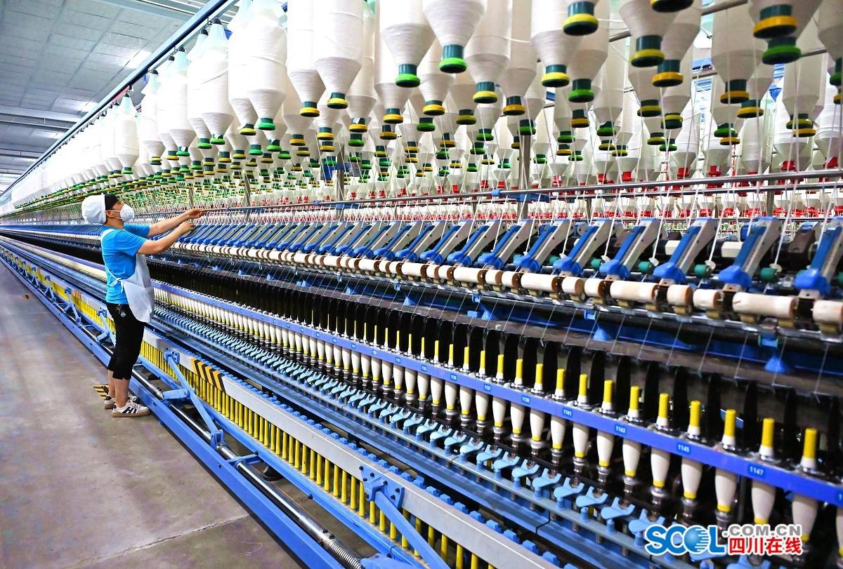 在眉山市仁壽縣金鵝紡織有限公司,工人正在生產(chǎn)線上趕制訂單。